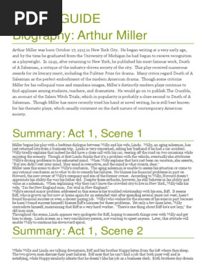 Novel Guide Biography Arthur Miller Summary Act 1 Scene 1