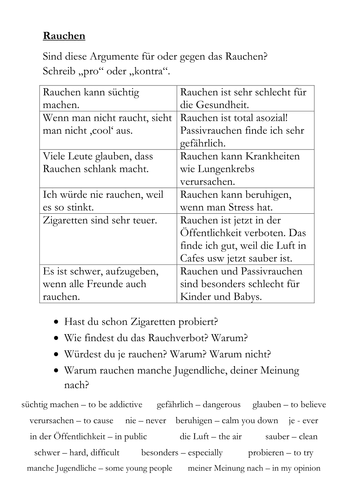 Rauchen Pro Und Kontra Teaching Resources