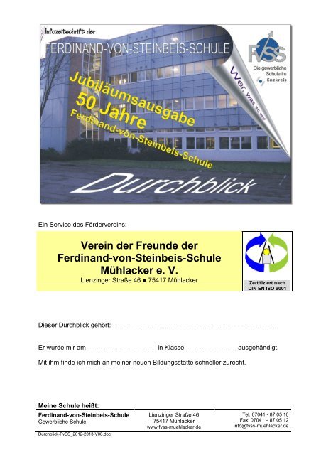 Bildungsmappe Ulm macht Schule Zuhause lernen. Zweck des Vereins ist die Foerderung des Erziehungsauftrags der Ferdinand-von-Steinbeis-Schule. Die Ferdinand-von-Steinbeis-Schule Ulm ist eine Gewerbliche Schule auf dem Kuhberg.