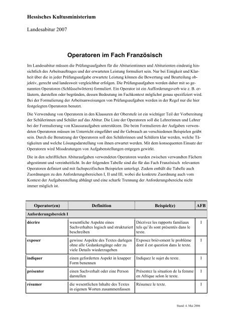 Operatoren Im Fach Franza Sisch