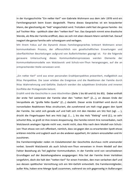 By on Februar 5 2021 in Uncategorized. Die der Epik angehoerenden Kurzgeschichte Ein netter Kerl geschrieben von Gabriele Wohmann und veroeffentlicht 1978 handelt von einem Gespraech einer Familie ueber einen jungen Mann waehrend des Abendessens Nonverbale Kommunikation gibt es bei eBay Kommunikation in der Kurzgeschichte Ein netter Kerl von Gabriele Wohmann Ein e der besten Kurzgeschichten - mit ganz grossem Potenzial was das Thema Kommunikation angeht. Die nonverbale Kommunikation ist ueberall.