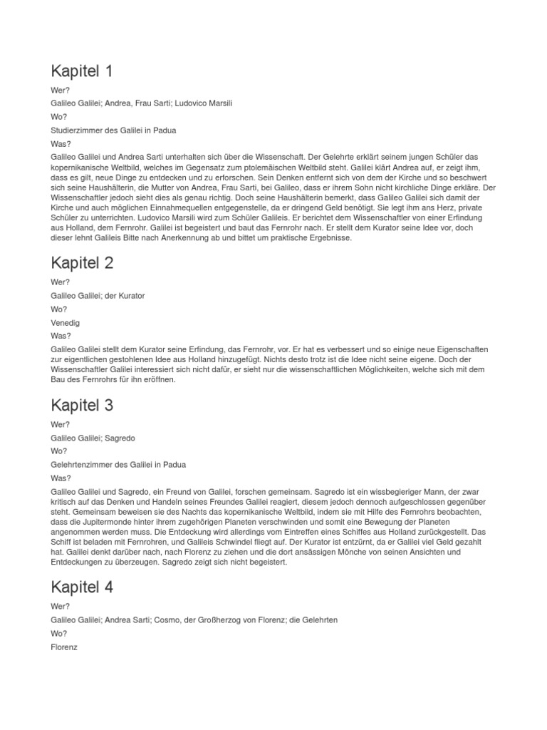 Bertold Brecht Leben Des Galilei Kapitel Zusammenfassung 1 15 Zusammenfassung